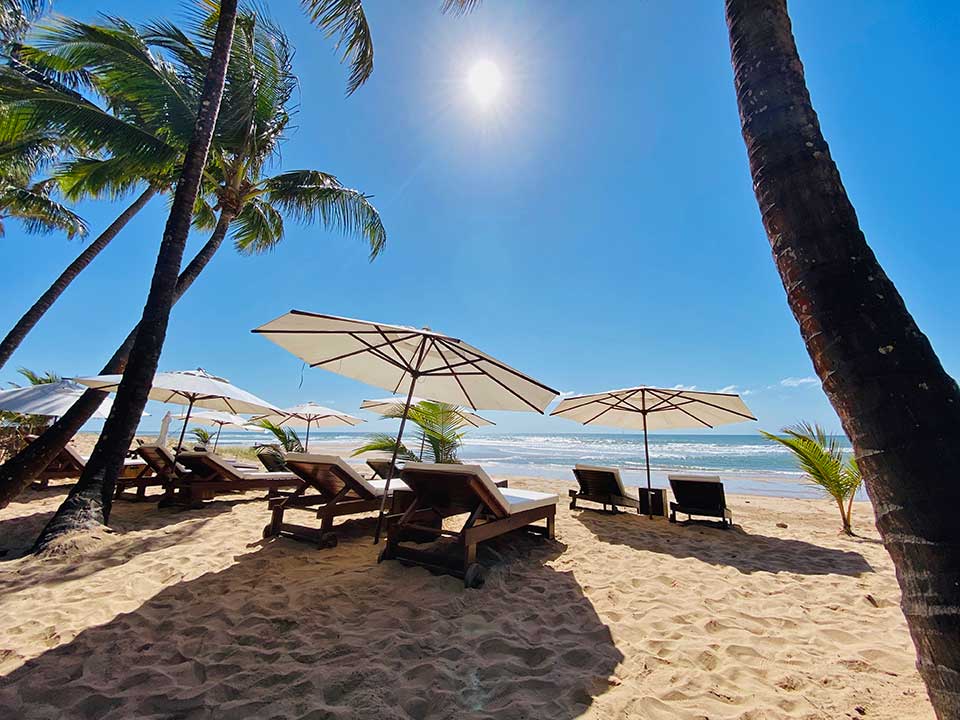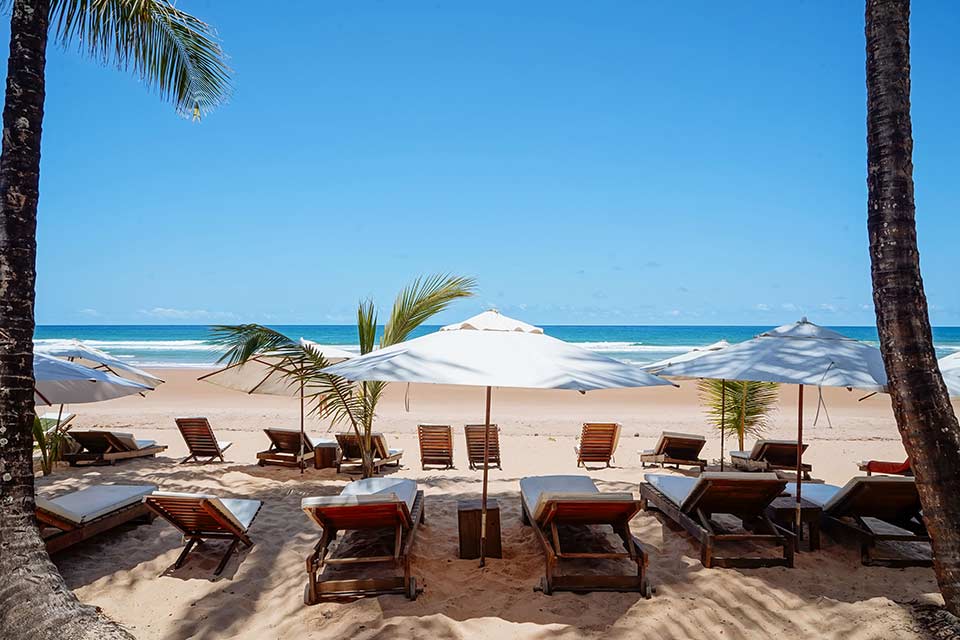 Ou se você simplesmente prefere ficar relaxando, há redes no bar e espreguiçadeiras com guarda-sóis esperando por você na praia.