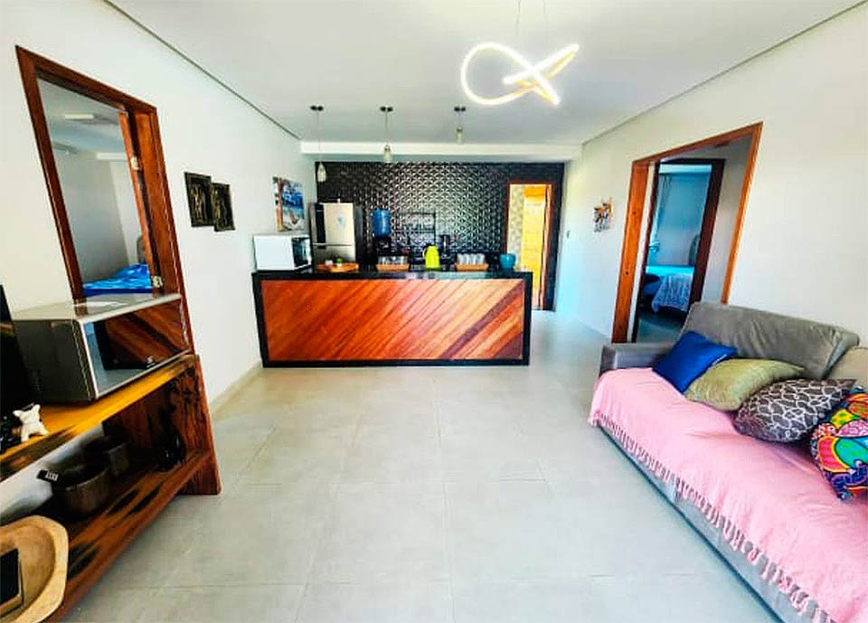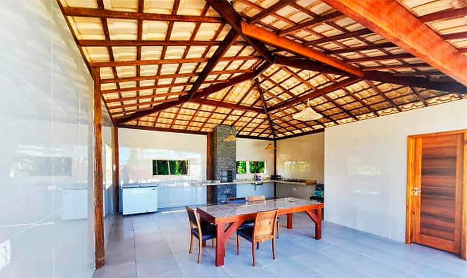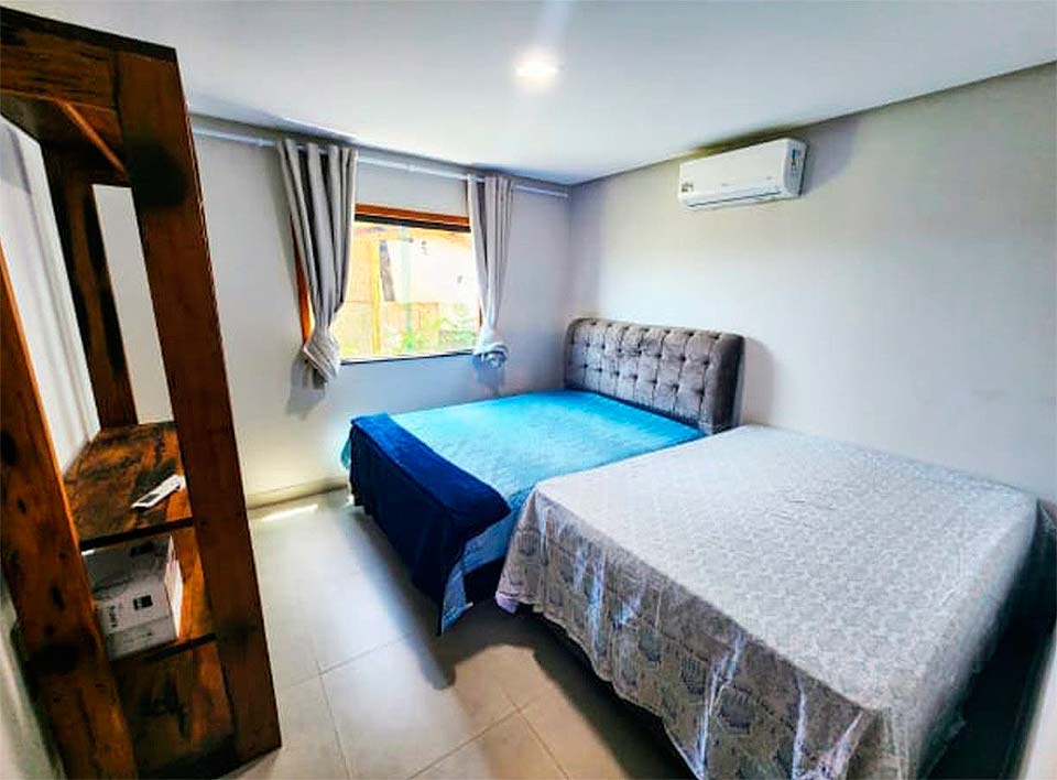 Casas de três quartos, com suíte grande, varanda, banheiro social, ar-condicionado nos quartos e piscina 9.9m×3.40m. Área gourmet completa com banheiro, chuveiro e área verde. Local seguro, com monitoramento de câmeras 24h. Espaço para estacionamento. Casa arejada, próximo 900m da praia das piscinas naturais. Internet, TV, e também área de serviço.