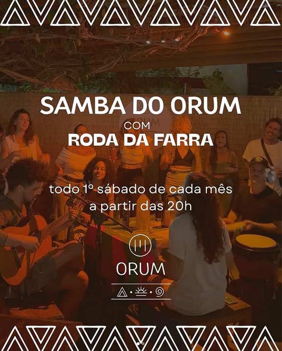 Todo 1º sábado do mês, o Samba do Orum volta com a Roda de Farra, com Maraú Banda — pra todo mundo sentir, cantar e celebrar junto. Marca na agenda e vem viver essa roda com alma!
