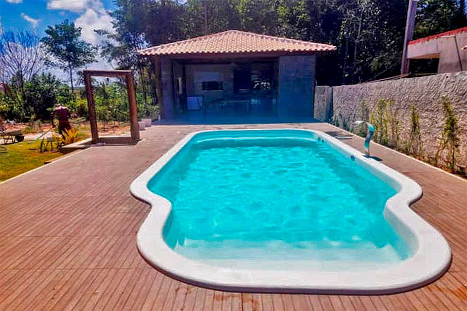 Casas de três quartos, com suíte grande, varanda, banheiro social, ar-condicionado nos quartos e piscina 9.9m×3.40m. Área gourmet completa com banheiro, chuveiro e área verde. Local seguro, com monitoramento de câmeras 24h. Espaço para estacionamento. Casa arejada, próximo 900m da praia das piscinas naturais. Internet, TV, e também área de serviço.