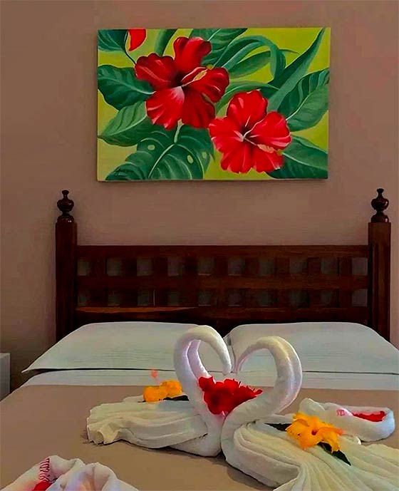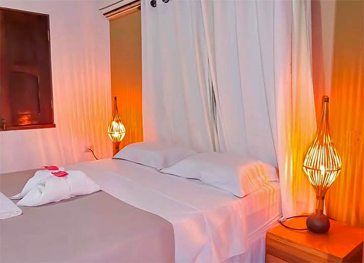 A Pousada das Roseiras está localizada a 100 metros da praia e a 100 metros do centro. Os apartamentos possuem ar-condicionado, TV e frigobar. Oferece café da manhã, varandas com rede e ducha na área do jardim. Opção de apartamentos duplo, triplo e quádruplo.